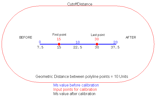 The cutoffDistance parameter is an input Double that represents the distance from the polyline from where points are not considered anymore as being valid calibration points.
