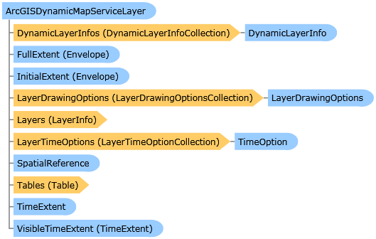The following image is simplified Object Model Diagram demonstrating the key Types that are asscoiated with using a Dynamic Layer.