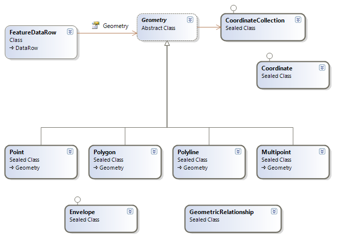 The Geometries namespace contains the classes used to represent feature shapes.